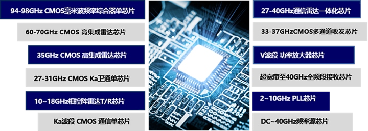 团队面向国家和行业发展需求,聚焦国家和四川省的重大、重点科研项目和业界横向工程项目,加快推动技术创新、落地并产生效益。近年来,团队重点针对低功耗、高集成度、低成本的CMOS毫米波收发芯片进行研究,研究内容包括射频器件、硅基和化合物基微波/毫米波芯片、组件和系统,研究频段覆盖DC-120GHZ。团队承担了多项国家重大/重点项目、国家自然科学基金项目及四川省科技厅相关项目,在Ka、V、W频段积累了大量的研发经验及成果。目前已研制成功应用于无线通信的CMOS35GH2收发全集成单芯片样片、应用于雷达探测的CMOS Ka频段的收发单芯片样片、应用于雷达探测的CMOSV频段收发单芯片样片等,芯片测试指标达到国内领先水平,部分产品已进入供货阶段。所承担的研发项目曾获得过多项国家和各领域科技奖项。