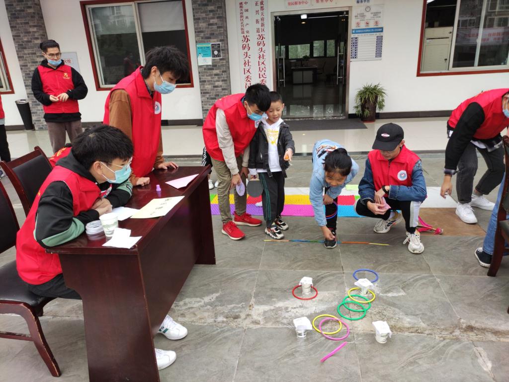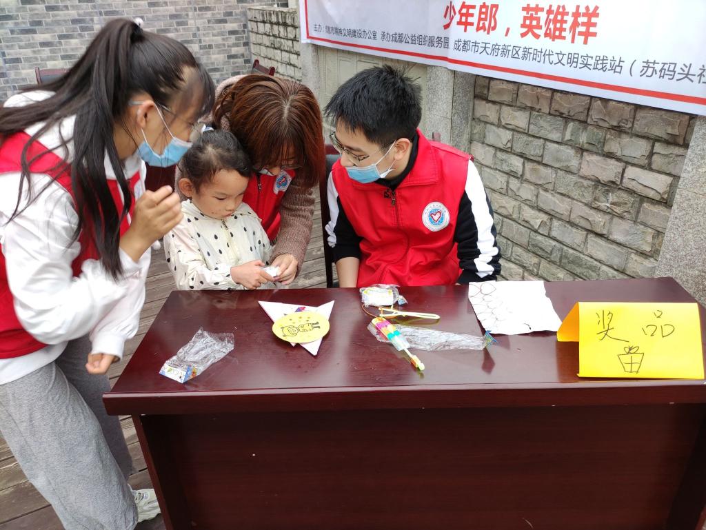 【航空港青志协】10月11日,由成都信息工程大学青年志愿者协会通信分会组织的以“风雪之后,又见花开——少年郎,英雄样”为主题的志愿者活动在苏码头社区展开。这天,近30名志愿者满怀激情和热情和小朋友一起,通过演绎疫情期间不同的身份来充分体会到抗疫英雄的艰辛。