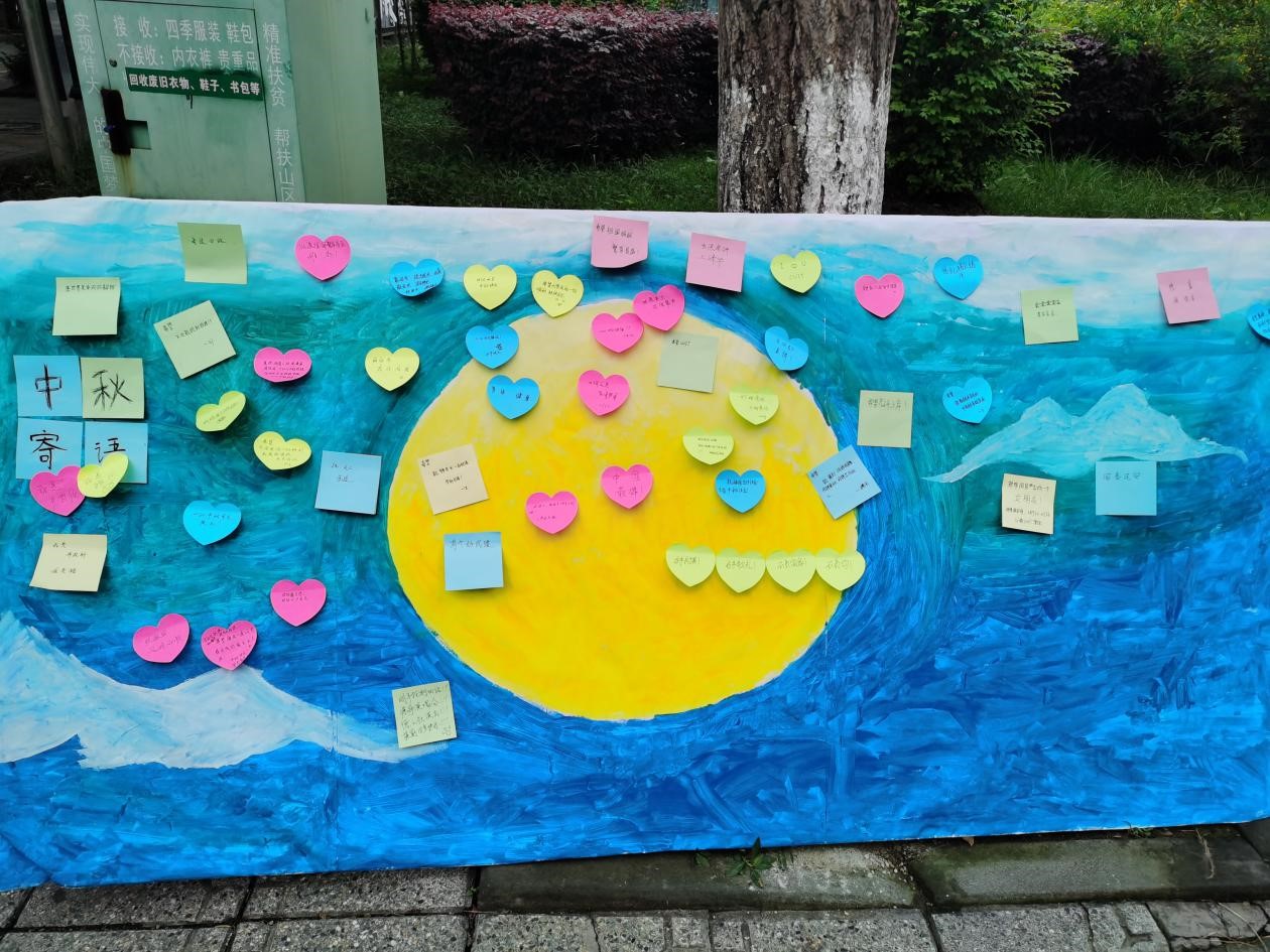 本次活动形式的特别之处在于以文字表达心意,那中秋圆月的幕布化身为承载思念的帆船,背负着聚集万千相思的明信片,奔赴远方同学们心中的白月光。