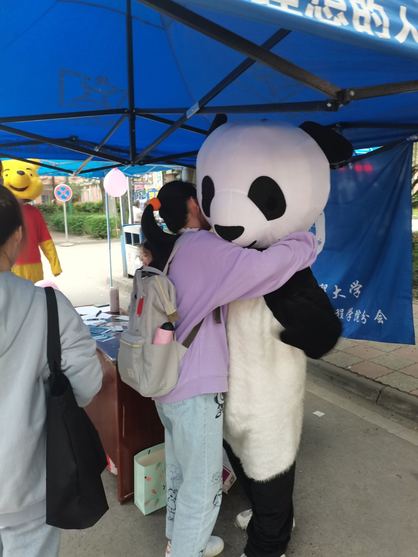 在本次活动中,我们采用了让活动人员在明信片上撰写正能量寄语和与玩偶拥抱互动的方式,活动人员需要在明信片上写出自己对陌生人的鼓励和寄语,同时拿走其他活动人员写的明信片,也可与三个玩偶互动拥抱。活动人员热情满满,收获感动与快乐。志愿者们任劳任怨,始终坚守在自己的点位,给参与的同学提供服务。