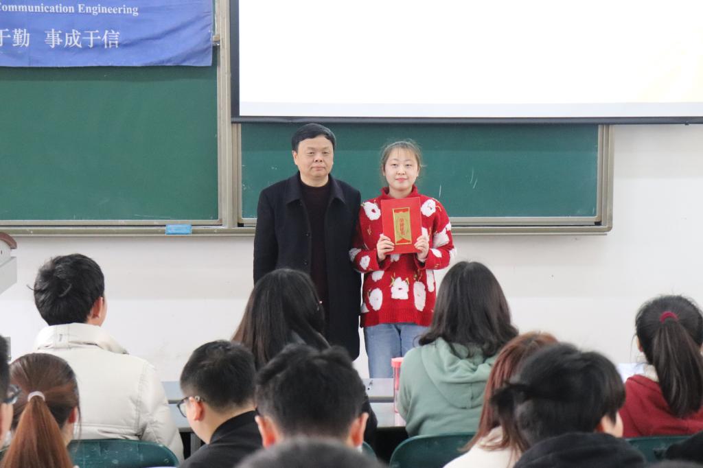 最后进行颁奖仪式,获得三等奖的班级是微电183班、通信181班、184班、205班、193班,由李芳老师、翟静波老师、张晓凤老师上台颁奖,获得二等奖的班级是通信201班、微电201班,由邵璐老师以及彭靖涵老师上台颁奖,获得一等奖的班级是通信196班,由刘绍全书记上台颁奖。