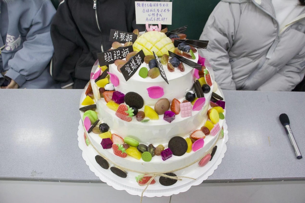 这一个三层的大蛋糕,写下了每个部门的名字,也写满了学生会主席们对betway必威西汉姆联团委学生会全体成员的祝福,在这个冬天,betway必威西汉姆联团委学生会为全体成员驱散了寒冷,带来了温暖,在即将到来的考试月,给予全体成员祝福,也缓解了准备应对考试的压力。希望未来在全体成员的共同努力下,通信工程团委学生会能越办越好,欣欣向荣!