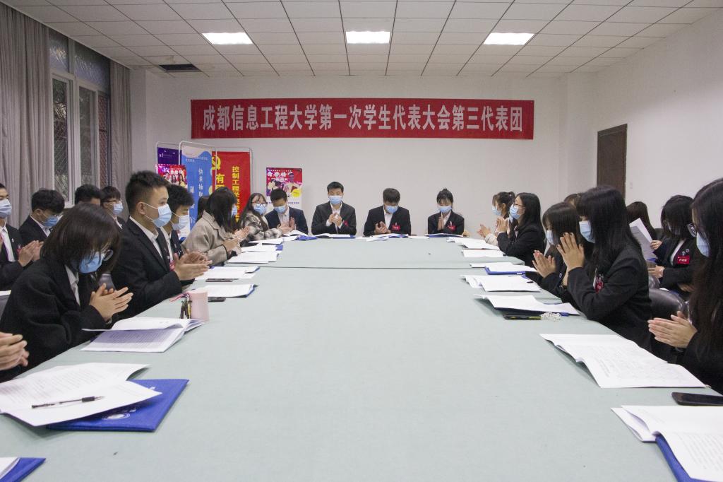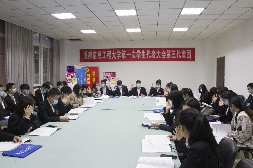 接下来进行了成都信息工程大学第十六届学生会工作报告进行表决。之后团长甘易尚又带领学生代表们讨论了学生会章程草案,代表们都表示一致通过。下午的第三代表团第二次分团会议至此结束。会议结束后大家拍照留念。