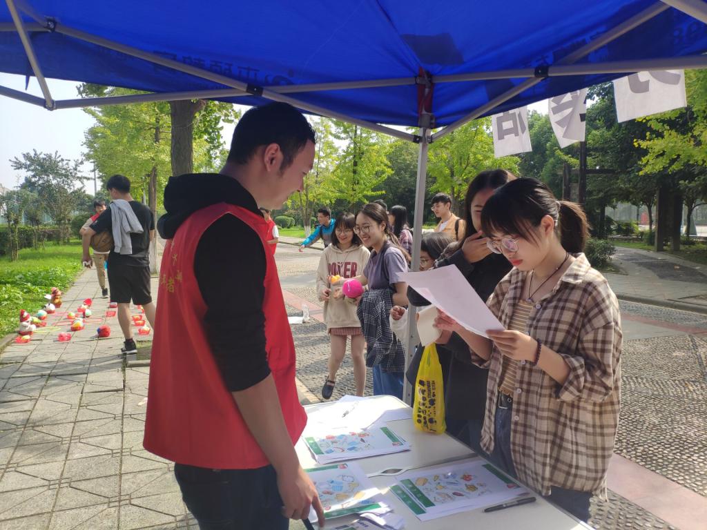 我们的志愿者们朝气蓬勃在早上10点就到达了活动场地开始了紧锣密鼓的准备工作。随后,我们按照各自分配的工作到达了各自的工作岗位,开始了各自的游戏与答题的现场工作。在本次整个活动中,我们的志愿者们为同学们积极的回答与交流垃圾分类的知识,参与者们感到受益匪浅。