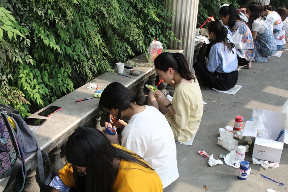 【航空港青志协】2018年04月22日,成都信息工程大学青年志愿者协会通信分会秘书处和通信学生会外联部共同举办的“趣石涂鸦”活动在成都信息工程大学航空港校区小罗马顺利举行,两个部门的所有成员以及参赛者参与此次活动。