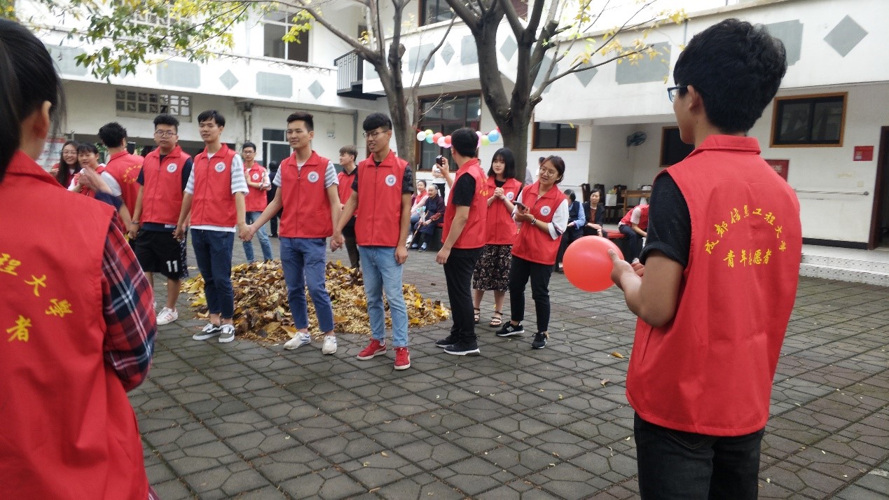 早上八点三十分志愿者准时乘车前往东升敬老院。九点二十到达敬老院后,一部分志愿者们用彩色气球装扮了活动场所,一部分同学去画与活动主题有关的板报,另一部分志愿者去陪同老人们聊天,并将手工制作的一捧捧小花花送给老人们。活动期间,志愿者们为老人们演唱了热情昂扬的歌曲、朗读了饱含深情的诗词,和老人们谈天说地,一起唱歌打羽毛球,给老人们按摩,志愿者们还帮老人们打扫活动场所,现场氛围十分融洽。