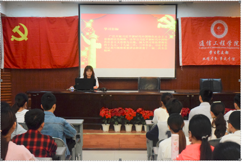 首先,王燕老师主持开展“学习党的十九大及两会精神宣讲会”。介绍了党的十九大精神及两会精神、习近平来川视察及省委十一届二次全会精神。她说,“不忘初心,方得始终,学生党员应该肩负起实现中华民族伟大复兴的使命。现在正是学校重要发展期及学院专业认证的关键时刻,作为受益者,学生党员应该牢固树立‘四个意识’,带头做合格党员,当干事先锋,发挥学生党员的积极主动性,将学院和学校的发展与自身紧密结合。在日常生活中更要珍惜党员的身份,敢于亮出党员的身份,以榜样的形象去影响身边人,用自己的方式为学院的发展贡献自己的一份力量。”她还提到,习近平总书记强调,推进全面从严治党,必须做好抓基层、打基础的工作,使每个基层党组织都成为坚强战斗堡垒。坚持“围绕工作抓党建,抓好党建促发展”的指导思想,着力加强学生党支部思想、组织、作风、纪律、制度建设,充分发挥基层党组织的战斗堡垒作用和学生党员的先锋模范作用,推动学院各项工作的顺利开展。