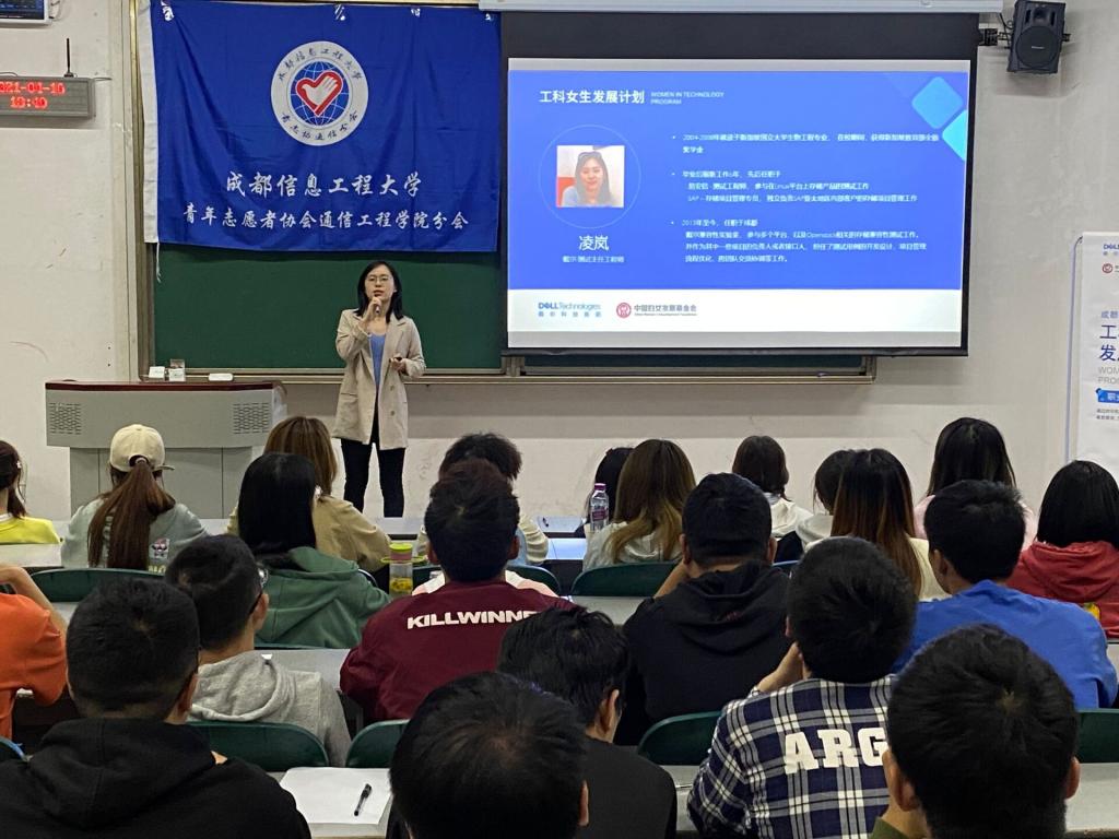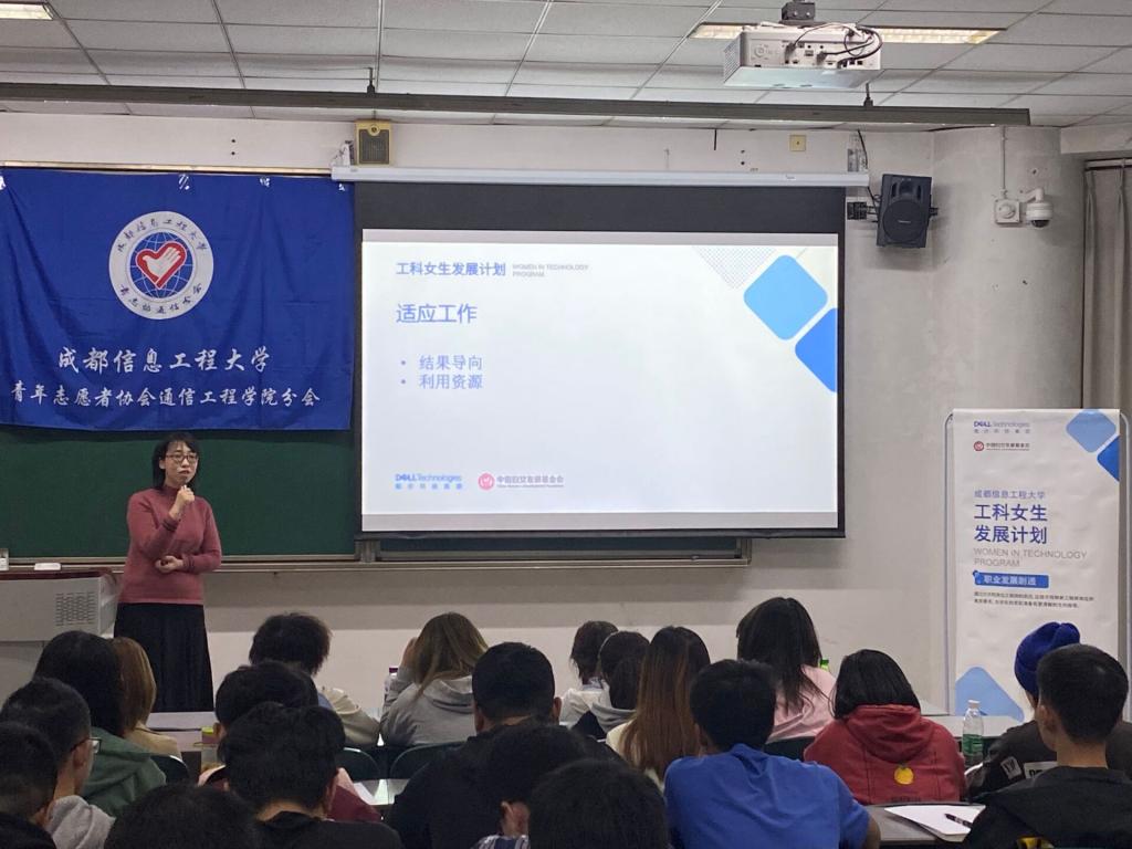 【航空港青志协】4月16日下午,来自dell科技集团的两位优秀工程师为成信大学子于H4112教室展开了“工科女生发展计划”的主题活动演讲,在青志协通信分会的小志愿者们组织配合下,活动取得圆满成功。