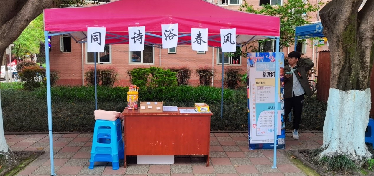 4月20日,betway必威西汉姆联宣传与媒体部门为庆祝党的100周年在一食堂和二食堂对面举办了活动“同诗浴春风”。