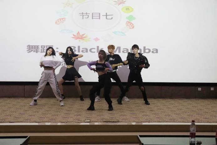 最后一个节目是由资源环境学院的同学上演舞蹈“Black Mamba”,乐起舞动,激情四射的舞蹈让全场气氛重新回到高潮,一下子就给了在场观众一种震撼。演出同学那娴熟而动感的舞步、相互之间的配合以及他们与音乐完美的融合,无不感染在场的所有观众,牵动着每一颗观众的心。