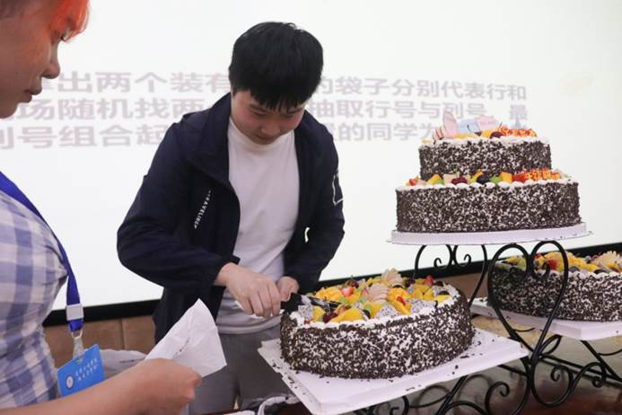 接下来便是晚会的尾声,第二次抽奖环节,经过紧张刺激抽奖,一位幸运同学得到了现金红包。最后各位同学和工作人员一起切了蛋糕,庆祝晚会的圆满结束,为此次晚会画上圆满的记号。