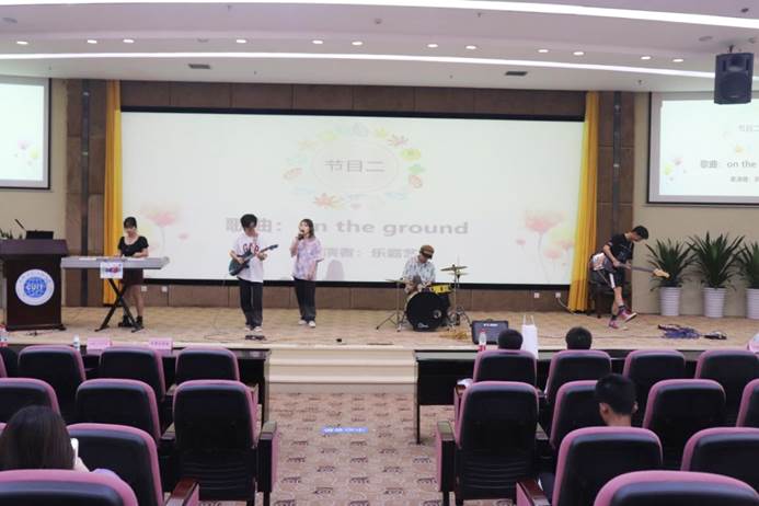第二个节目是由乐霸艺联的同学演唱的歌曲“on the ground”,以及“你的微笑”。技艺高超的乐手与歌手那如同天籁之音的歌声相互配合,让台下的同学们在这国际会议厅中感受到了演唱会的氛围。