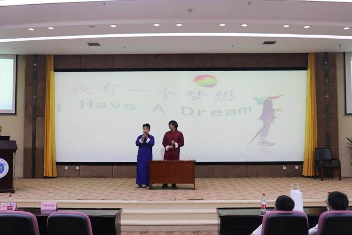 第三个节目是由大气科学学院的两位同学主演的相声“我有一个梦想”,两位同学幽默风趣的对话和精湛的表演赢得了台下同学的阵阵掌声。
