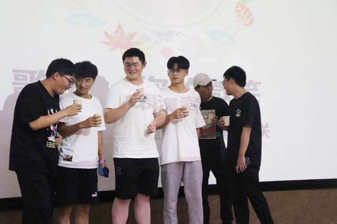 然后又到了游戏环节,这次的游戏是众所周知的“谁是卧底”,规则是每组队员上场后,由主持人告诉大家普通饮料和特殊饮料在场队员喝下每一种饮料,喝下特色饮料的同学需要伴演出喝下普通饮料同学的表情,言语。每轮有一次互相提问的机会,每轮根据每位同学的票数淘汰一名同学,若喝下特殊饮料的同学成功存活到最后,则卧底获胜,而失败一方的惩罚则是唱蜜雪冰城主题曲。台上的同学互相观察,相互试探,上演一幕幕谍战大戏,同学们笑得合不拢嘴,人仰马翻。