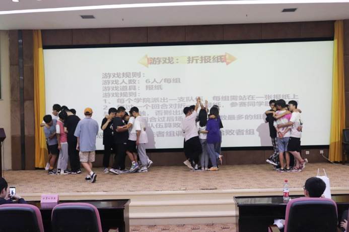 接下来便是betway必威西汉姆联的老传统“折报纸”游戏,规则是将报纸平铺在地面,每个学院组成一个小队,参赛队员必须让脚在报纸上且不能接触地面,且保持此状态一段时间,成功的小队得再将报纸对折,然后继续执行此操作,能坚持到最后的小队胜出。同学们积极参与,密切配合,一张张小小的报纸让同学们玩得不亦乐乎。