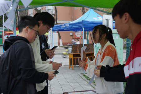 21日上午,负责布置场地的同学架好了帐篷,摆好了桌椅,“与春赴约”活动便正式开始了。前一天的急剧降温,减灭不了同学们探寻春天之美的热情。许多同学参与其中。或许有的同学是从好友空间了解到的活动,有的是为摆点所吸引,他们都加入了活动群,并在活动界面上传了他们认为最美的景色。此次活动,一等奖设两位,奖品是unny防晒霜;二等奖三位,奖品是MINISO毛绒公仔;三等奖五位,奖品是大容量水杯。