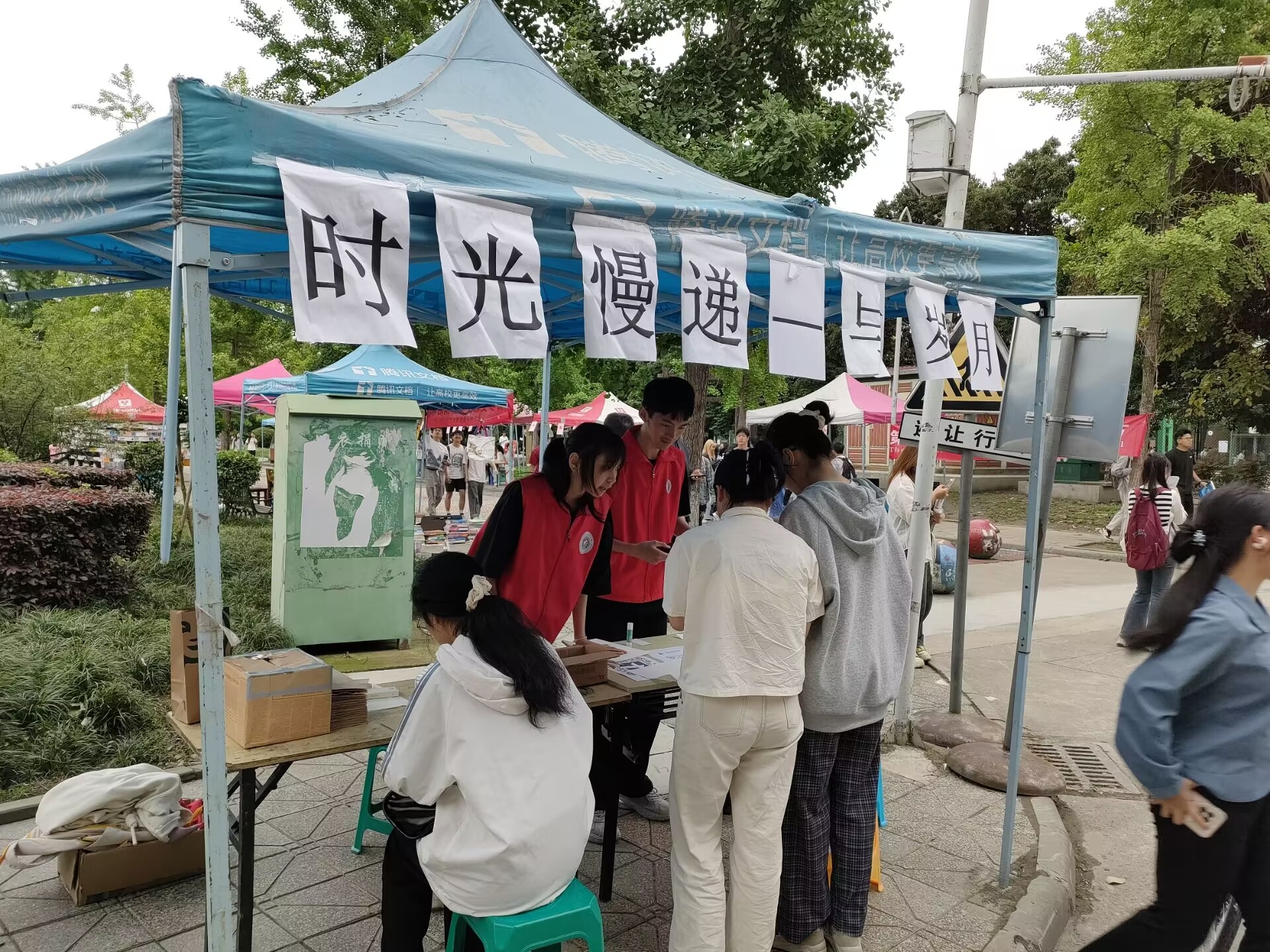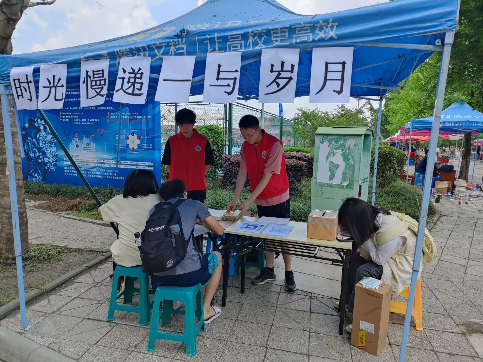 活动现场气氛热烈,在志愿者的引领,同学们立足当下、畅想未来,笔间轻微的沙沙声,阵阵入耳,探入心房,每一字字一句句皆饱含深情。时光慢递活动的规则是:同学们在活动现场领取一份信笺与信封,通过写一封亲笔信,记下此时的梦想和心迹或者对家人、朋友、同学、老师等的期待与祝愿,并折叠装入信封,在信封上,标注寝室楼号、寝室号、姓名以及联系方式,完成上述步骤之后,将信放入自制的“时光邮箱”,等待明年的志愿者的上门派送。同学们通过一种新颖、有趣且充满诗意的方式,表达生活中不便直接表达的情绪,通过拉长收信时间,缓解寄信人的焦虑感,帮助减压。