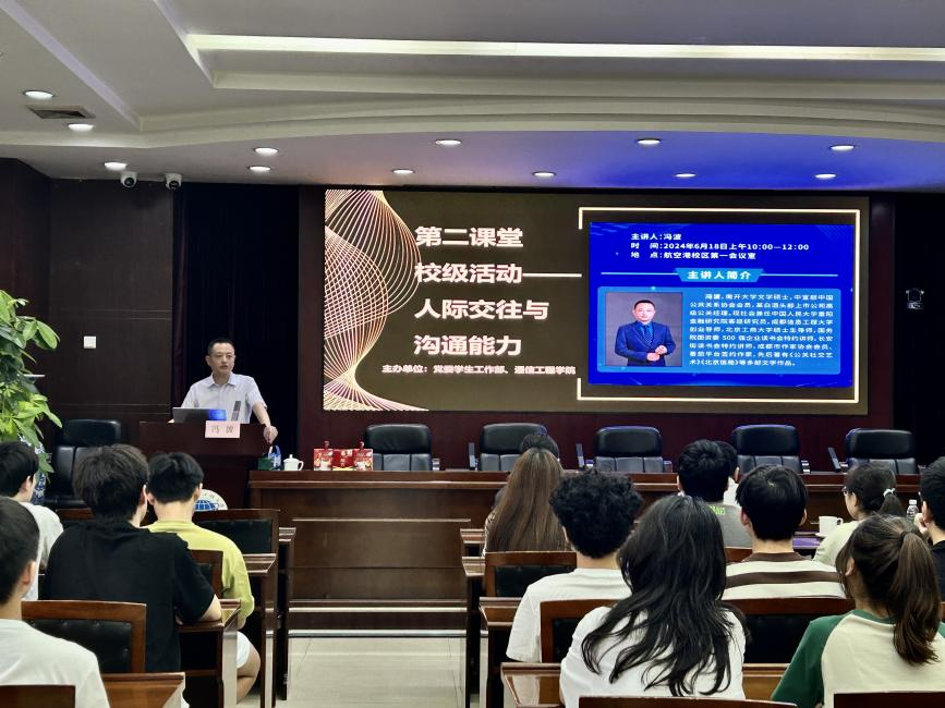 6月18日上午10:00,为进一步提高大学生交流沟通、人际交往等各方面的人际交往能力,促进学生更好地了解社会、融入社会。党委Betway必威西汉姆联官方网站部和betway必威西汉姆联(微电子学院)在航空港校区第一会议室联合举办面向全校学生的第二课堂校级活动——公关社交礼仪讲座。特邀南开大学文学硕士、中宣部中国公共关系协会会员、学院创业导师冯波来校讲解人际交往和社交技巧。