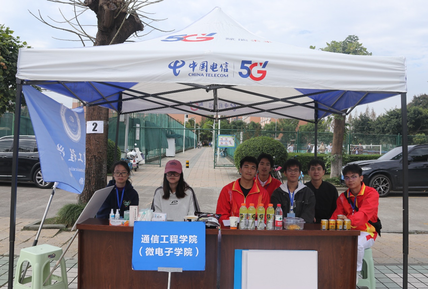 开幕仪式上,学院党委书记马文英、党委副书记刘畅、副院长李文藻和团委书记盛小芳带领的80人运动会方阵成为全场焦点。在主校道两侧,出自我校实验室的两辆智能车辆担当前锋护卫之责两辆产自通创实验室的智能车在方阵两侧“护航”,旗手英姿挺拔,同学们身着红白相间的运动服,手持小院旗和向日葵,热情洋溢地向观众挥手致意。当方阵经过主席台时,全体成员与观众席一起高呼“芯通未来,强国有我”的口号,展现了通信学子科技报国、善作善为的坚定信念和毅力。