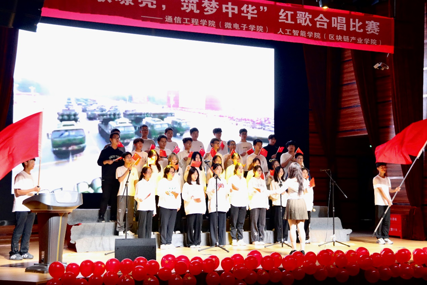 为庆祝中华人民共和国成立75周年,弘扬爱国精神,传承红色基因,增强班级凝聚力,丰富校园文化。11月7日晚19:00,由betway必威西汉姆联联合人工智能学院举办的“红歌嘹亮,筑梦中华”合唱比赛在成信大礼堂拉开帷幕。两院共组建9支队伍,选取不同主题红歌参赛,特邀校团委副书记,各学院党委书记、副书记、学生科科长、团委书记担任评委。