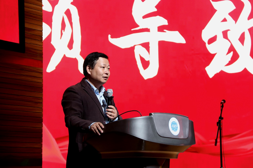 在热烈的掌声中,人工智能学院党委书记林细俤为本次比赛致辞,点明此次红歌合唱的深刻意义,更期待每支队伍都有精彩的表现,唱出气势、唱出风采。