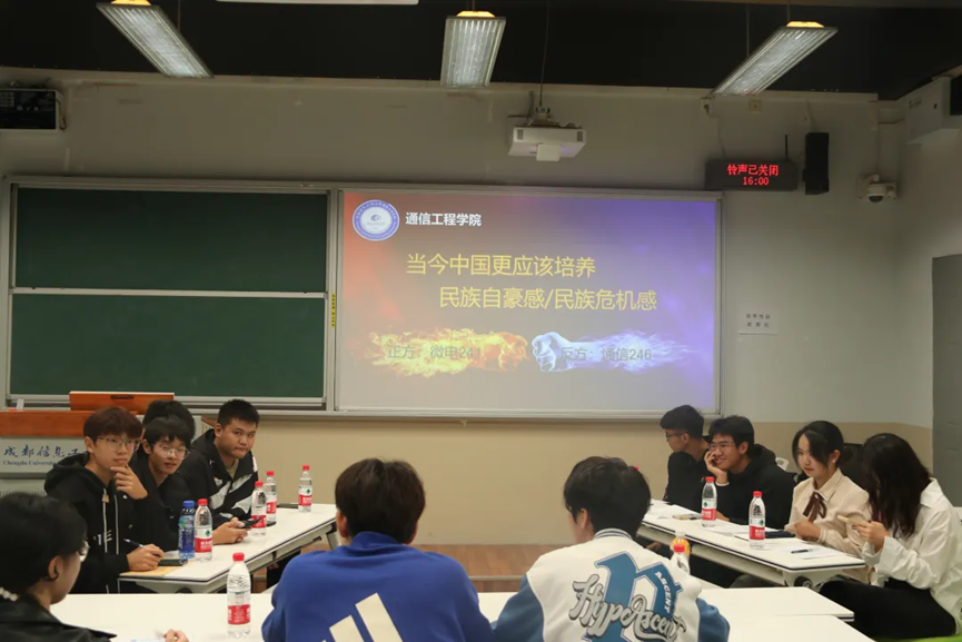 10月13日,正值国庆长假结束之际,微电子241班与通信246班围绕“当今中国更应该培养民族自豪感/民族危机感”展开激辩。正方从历史与文化角度论证民族自豪感的重要性,如凝聚人心、抵抗外来文化侵略以及推动经济发展;反方则强调民族危机感在指引发展方向、激发奋斗精神以及未雨绸缪的独特价值。在四十分钟的辩论中,八位辩手展现出严密的思维和冷静的应对,引用历史典故、国际时事、战争史实等素材,为观众带来一场思维盛宴。此次辩论激发了观众的热情,也在他们心中种下爱国的种子,更为祖国75岁生日做了一次青年学生的献礼。最后通信246班凭借更具说服力的论点和逻辑赢得比赛。