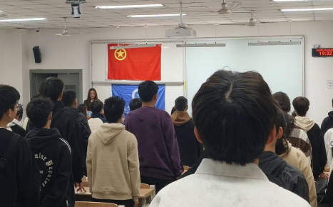 在庄严的团歌中全体参会人员起立,齐声高唱团歌,激昂的旋律和坚定的歌声展现了青年学子的蓬勃朝气和爱国情怀。