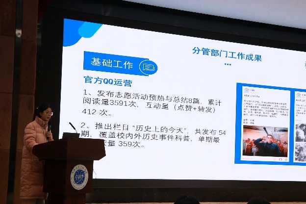 会上,盛小芳对各主席的述职做出点评,她先是对上学期团委各项工作取得的突破和进展表示充分的肯定,同时指出工作中存在的不足。她强调,各团委骨干必须持续强化“制度意识、工作意识、创新意识”,不断促进团委从组织到个人都长足的进步。