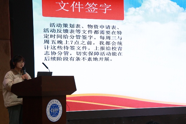会议听取了学生会、青志协、研究生会各部门分管主席的工作述职报告。报告围绕思想引领、校园文化建设、权益服务、骨干培养等重点工作展开。反思总结学生活动成效,精准对接同学需求创新活动形式;聚焦志愿服务工作,加强高质量志愿活动建设;营造科研学术氛围,依托研会打造学术沙龙平台。另外,各主席还以部门为单位围绕着新学期工作的开展做出精细规划。