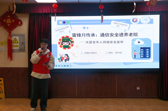 学榜样精神如炬,传雷锋风尚似歌。3月16日,betway必威西汉姆联(微电子学院)青年志愿者协会走进成都寿而康养老院,开展“通信安全进养老院,关爱老年人网络安全”主题活动。通过“理论讲解+情景模拟+一对一指导”相结合的方式,帮助老年群体提升网络安全风险防范意识。