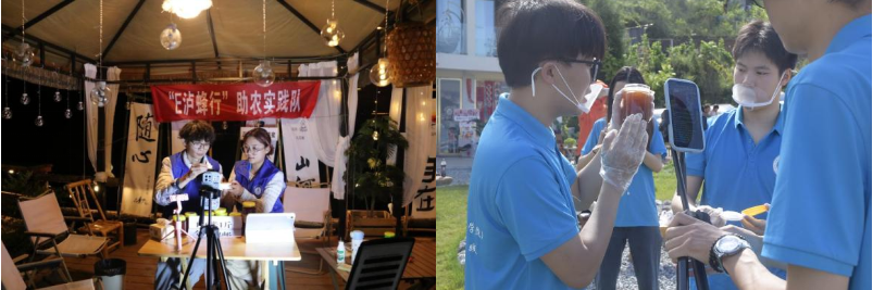在为期6天的实践活动中,"E泸蜂行"实践队以“体验—调研—销售”的方式,完成黑沟村电商直播的初尝试。立足自身优势,打造了完整详细的助农方案:精心设计制作《黑沟蜂蜜产品画册》,手绘插画生动展现古法养蜂技艺;设计融合雪山、蜜蜂、花椒元素的特色包装,提升产品附加值;作为黑沟村电商发展的“青年主播”,搭建“抖音+微信视频号”双平台直播,并编写通俗易懂的《直播店铺搭建指南》。通过实践之旅,实践队深刻认识到乡村经济发展的不易,以及乡村振兴需要青年智慧,需要青年活力。