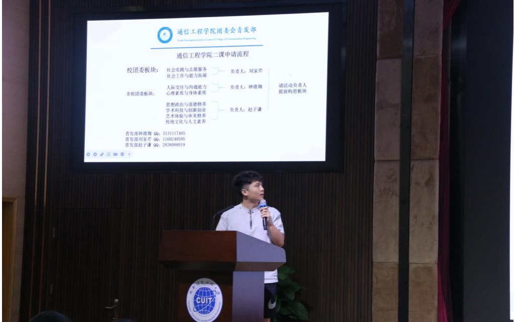 最后,为规范各部门第二课堂活动申请与审批流程,青发部负责人钟港翔开展专题培训,围绕申报流程、材料规范和审批要点等内容进行详细讲解,切实提升部门工作效率。培训结束后,各部门依次进行风采展示并合影留念。