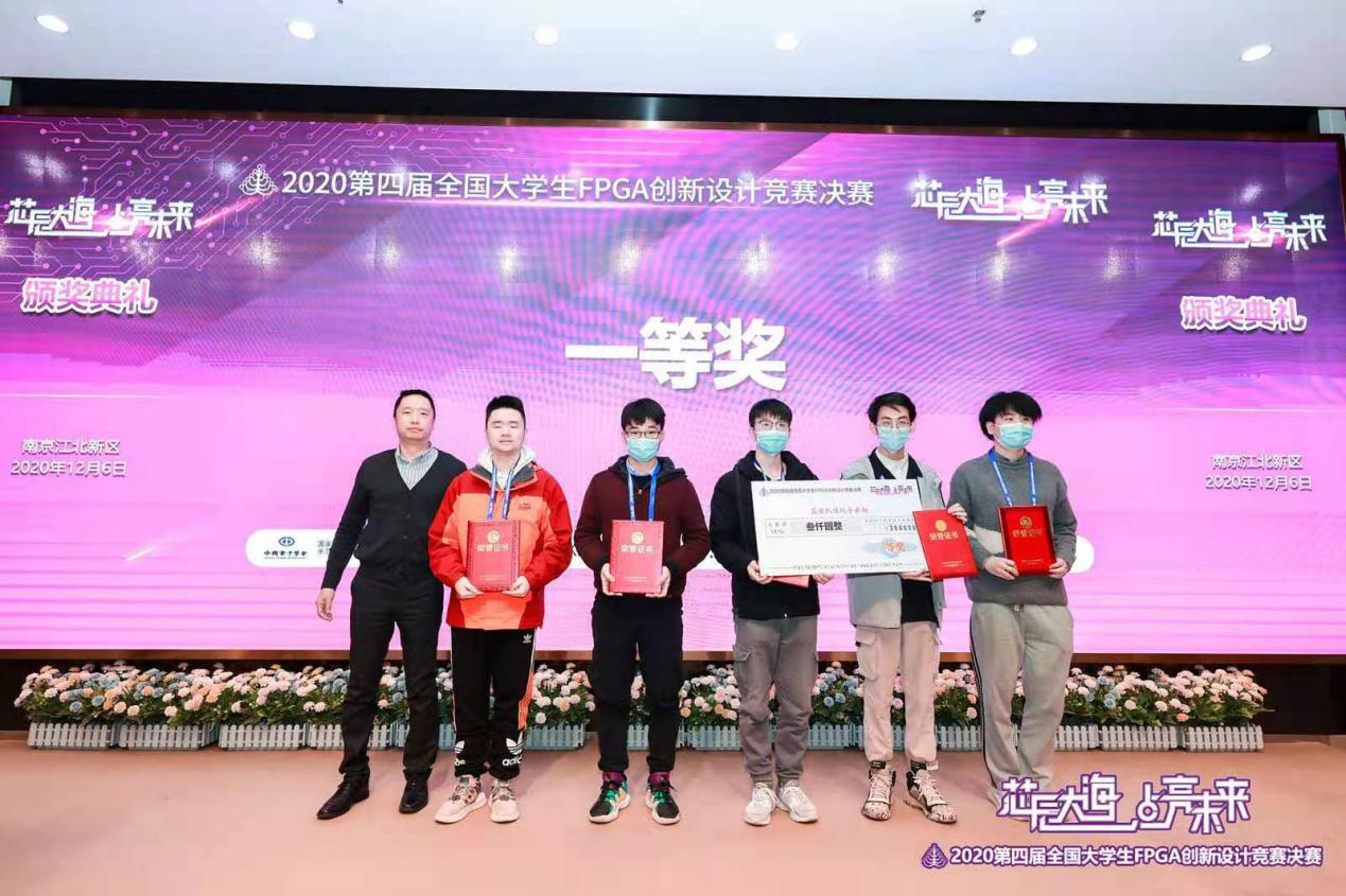 2020第四届全国大学生FPGA创新设计竞赛全国总决赛于2020年12月4日-6日在南京江北新区ICisC实训基地举行。此次竞赛由中国电子学会、国家级实验教学示范中心联席会电子学科组主办,东南大学、南京市江北新区管委会联合承办。本届竞赛共有包括清华大学、北京大学等在内的131所高校的900多支队伍报名参赛。我院李蠡副教授指导的研究生相博镪、胡双、邹金成团队设计的名为“一种含基于GRU网络硬件加速器的AI编曲SoC”的参赛作品在初赛中脱颖而出,进入全国总决赛。与来自全国各地的139支参赛队伍,近408名参赛选手在南京同场竞技。该团队所完成的作品以较高的科研性、完成度以及创新性,荣获全国一等奖、最佳创意奖两项大奖。成都信息工程大学在此次竞赛中积极参与和有效组织,获得了优秀组织奖。