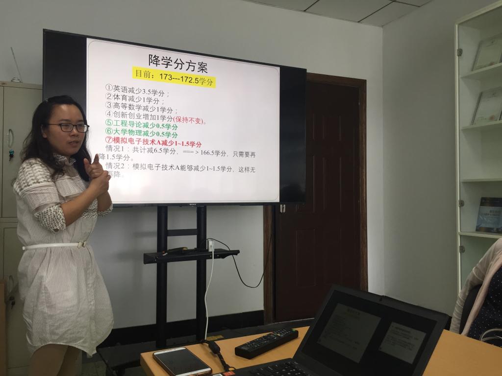 (1)根据学校方案,工科降低总学分的要求,在2018版培养方案中将通信工程专业和微电子专业的总学分降低,争取将《工程导论》、《创新创业》、《大学物理》、《模拟电子技术A》的学分降低一点。