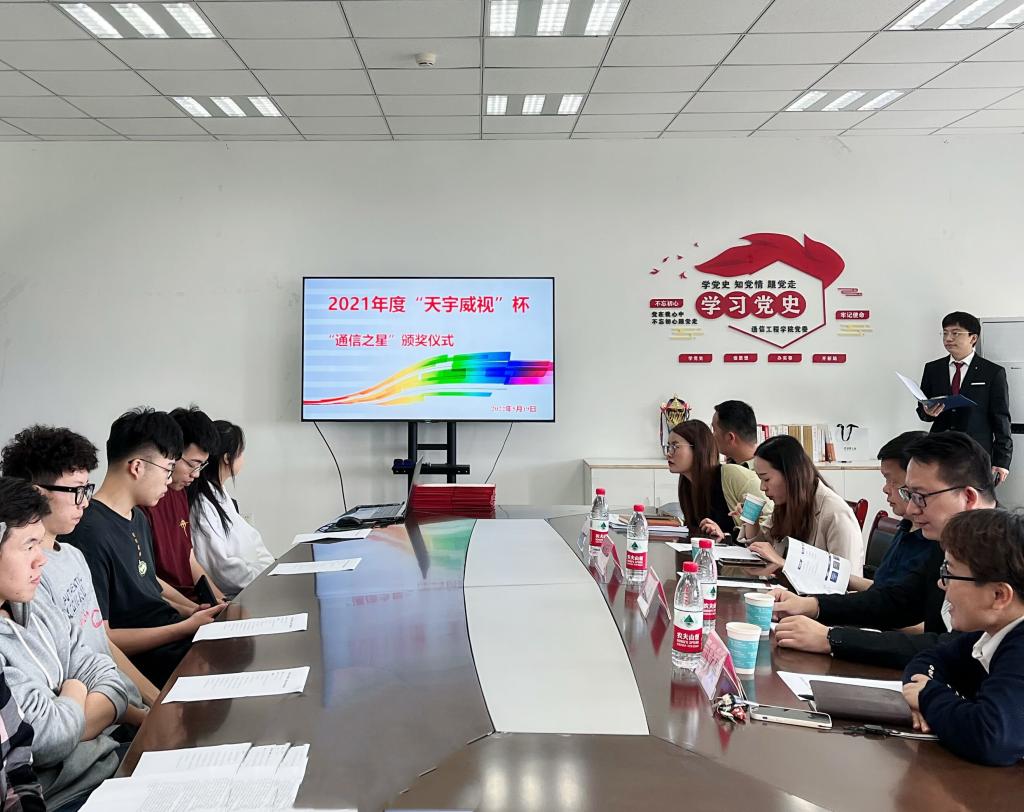 5月19日下午, 2021年度“天宇威视”杯“通信之星”颁奖仪式在信达楼A603举行。学院党委书记刘绍全、党委副书记(教学副院长)马文英、天宇威视(四川)信息技术有限公司总经理赵庆森、综合部经理张桂菱出席仪式。学院辅导员、获奖学生、2020级和2021级部分学生代表参会。