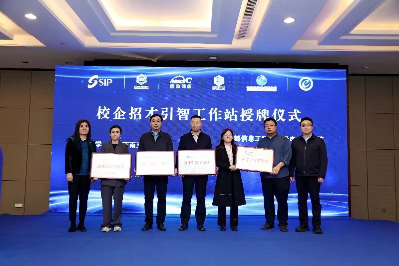 会上,苏州纳米城分别与四川大学、电子科技大学、西南交通大学、成都信息工程大学、西华大学创建了“招才引智工作站”,并举行了揭牌仪式。
