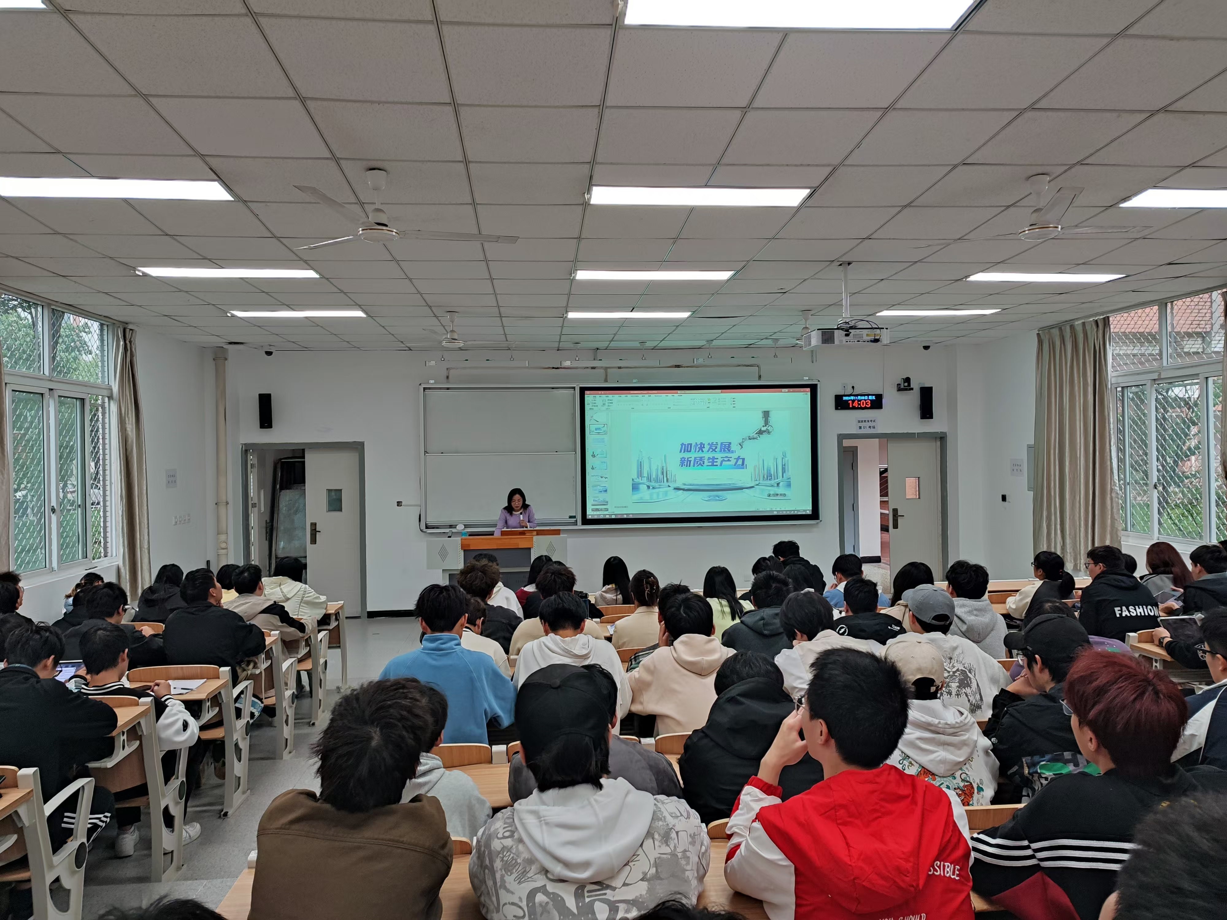 罗小蓉围绕“加快发展新质生产力”这一主题,深入浅出地讲解了当前国内外经济发展的新形势,特别是新技术、新业态、新模式对经济增长的推动作用。她强调,随着科技的快速发展,新质生产力已成为国家竞争力的重要组成部分,同学们作为未来的工程技术人才,应当具备敏锐的洞察力和创新能力,需要不断提升自身的综合素质和创新能力,积极投身于科技进步和社会发展中。