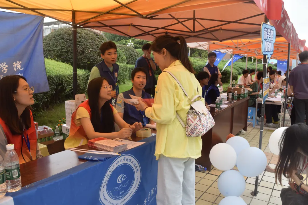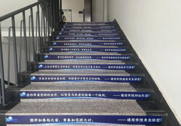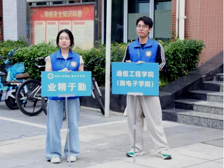 同时,学院融合学科特色对航空港和芯谷两校区本研迎新现场进行布置。印有全体学工老师新生寄语的打卡点、由本科新生名字组成的“通信”展板、粘贴在步梯上各学生组织的欢迎标语等,努力打造富有特色亮点、人文关怀的报道氛围,不断传递出学院对新同学的关怀和期望。