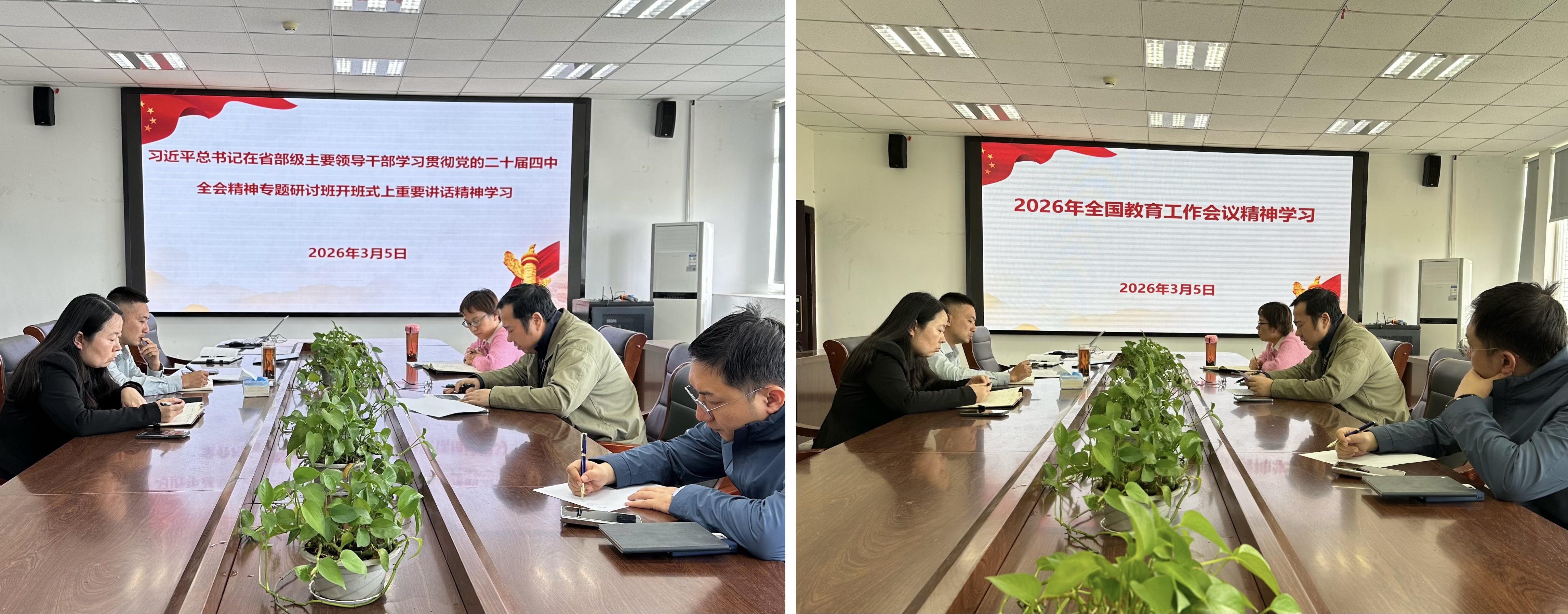 3月5日,学院党委组织开展专题集中学习,学院全体领导班子成员参加,集中学习习近平在省部级主要领导干部学习贯彻党的二十届四中全会精神专题研讨班开班式上的重要讲话精神、2026年全国教育工作会议精神,并重温学院党委在2025年期间理论学习的重点内容。