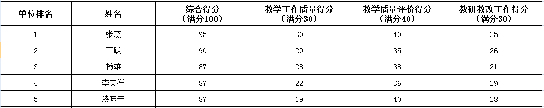 根据《成都信息工程大学教学质量奖励办法》(成信校发〔2017〕164号)和《成都信息工程大学教学质量奖励办法实施细则》,经学院教学质量奖评选工作小组讨论,拟推荐张杰老师等人参加成都信息工程大学首届 “教学质量奖励”的评选。现予以公示。