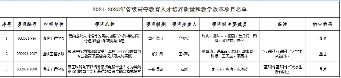 根据《四川省教育厅关于开展 2021—2023 年高等教育人才培养质量和教学改革项目申报工作的通知》(川教函〔2021〕532号)、《四川省教育厅关于公布2021-2023年四川省高等教育人才培养质量和教学改革项目立项名单的通知》(川教函〔2022〕114号)及《四川省教育厅关于开展2021-2023年四川省高等教育人才培养质量和教学改革项目结题验收的通知》文件要求,学院对获批2021-2023年四川省高等教育人才培养质量和教学改革项目组织开展结题验收,现将初审结果公示如下: