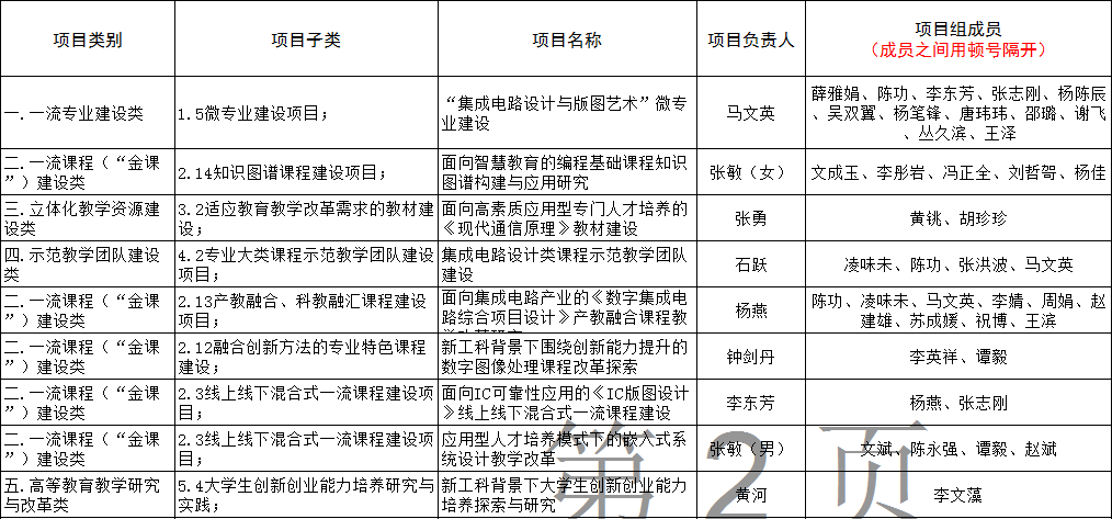 根据教务处《关于开展 2024年本科教育教学研究与改革项目暨本科教学工程项目申报及2022-2023年本科教学工程项目结题验收、年度检查工作的通知》的文件精神要求,经过betway必威西汉姆联(微电子学院)2024年本科教学工程项目申报评审小组审查,同意推荐以下项目参与申报。