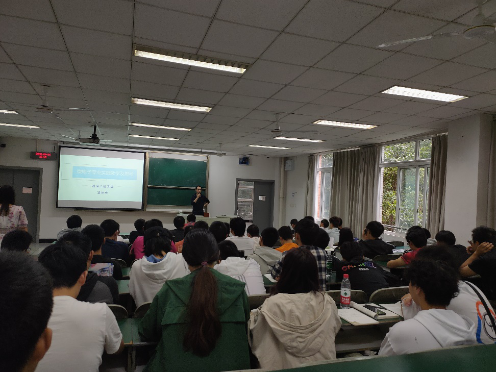 陈功老师讲解了微电子科学与工程、集成电路设计与集成系统专业的简介,而凌味未老师为学生讲解了微电子专业实践教学及思考。