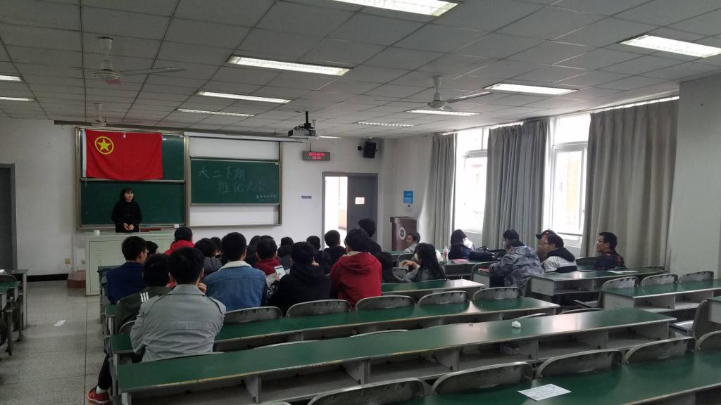 会议开始,团支书杨阳上台发言,对本次推优大会的流程进行介绍,讲解优秀团员的选拔标准。然后由五位同学依次上台发言。大家阐述了入党动机,并依次从学习、生活等方面进行总结,讲明自己以后的发展方向及思想建设。