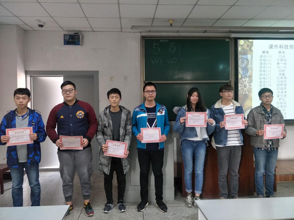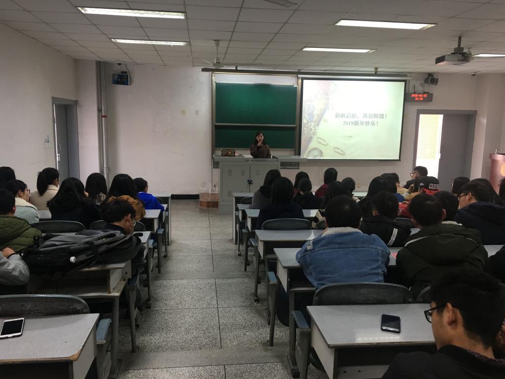 大会在辅导员的新年祝福中拉开序幕。首先,张老师分析了各班的成绩状况,使每位同学清楚的认识自己在年级中的学习状态,并列出各科目成绩优秀的同学以及综合排名年级前十一位的同学予以高度的赞扬,且照相留念。随后,对上学期科技培训获得优秀学员的同学颁发了荣誉证书,并号召全体同学向他们学习,不仅要学好理论知识,取得优异的成绩,同时要争取更多的实践锻炼机会,提升专业实践能力。最后张老师还对成绩落后的同学给予了中肯的建议,提醒同学们新学期伊始该处理的事务,鼓励大家无论之前收获如何,祝愿大家在新的一年,新的学期里,要新帆启航,勤学格物!