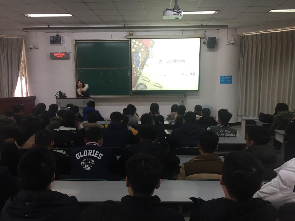 新年将至,大一学子们的第一个学期已经接近尾声!回顾总结这一学期的成绩与不足,我们继往开来,期盼来年再创佳绩。由此,1月9日betway必威西汉姆联2017级辅导员张毅老师组织召开期末年级总结大会,同时开展假期安全教育以及部署下学期工作方向。betway必威西汉姆联2017级全体学生在4112教室参加了年级总结大会,betway必威西汉姆联党总支书记刘绍全到场参加。