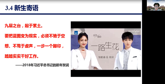 最后马文英以习近平总书记的一句话“九层之台,起于累土。要把蓝图变现实,必须不驰于空想,不骛于虚声,一步一个脚印,踏踏实实干好工作”和一首歌《一路生花》来结束讲座,希望同学们脚踏实地、一步一个脚印走好越来越光明的道路。