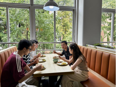 随后,为考察新生就餐的食品质量安全情况,刘畅带领新生辅导员深入学生食堂,与学生面对面交流一同进餐,仔细询问学生有关食堂的饭菜价格、质量、种类和服务质量等方面的感受,认真听取学生的反馈和意见,并在就餐中对同学们在校的吃、穿、住、行等日常生活进行关心,就餐过程中氛围融洽、师生心与心贴近。