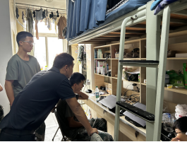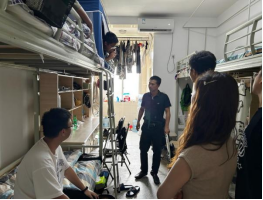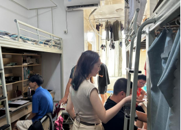 就餐后,领导老师们随即前往新生宿舍,对同学们住寝的安全保障、学习状况、生活习惯以及室友相处等情况进行了仔细询问,在走访过程中,刘畅强调同学们遇到任何问题或困难都随时向学院反映,学院一定尽力协调解决。辅导员就相关同学反映的问题进行记录,并叮嘱同学们注意高温感冒、宿舍卫生、用电安全等生活细节。