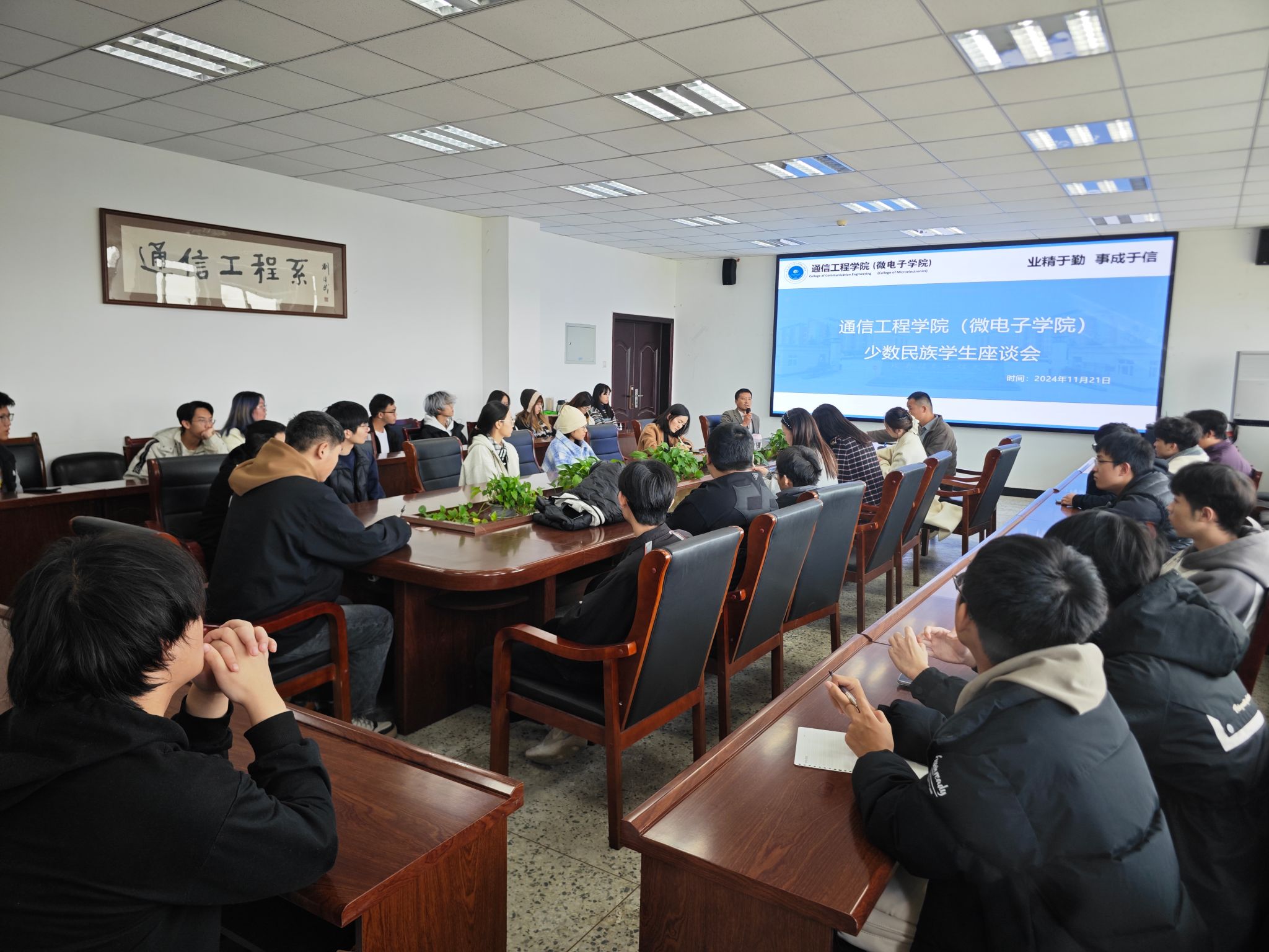 为深入学习贯彻党的二十届三中全会精神及中央民族工作会议精神,贯彻落实习近平总书记关于加强和改进民族工作的重要思想,铸牢中华民族共同体意识,深化民族团结进步教育,促进各民族学生交流交往交融,助力少数民族学生更好成长,11月21日15:30分,betway必威西汉姆联(微电子学院)党委在信达楼A603会议室组织开展了一场少数民族学生座谈会,学院党委副书记刘畅、全体辅导员及学院全体少数民族学生参加了此次会议。